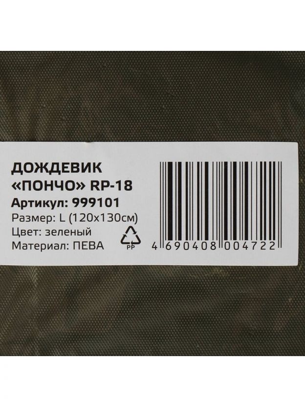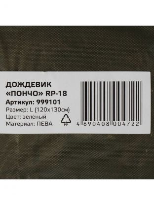Цвет — зеленый, материал — ПЕВА. Размер — L (120х130 см). Бренд — Park, модель RP-18, артикул 999101.