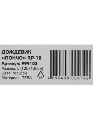Дождевик пончо 120х130 см, с капюшоном, Peva, L, голубой, Park, RP-18, 999103