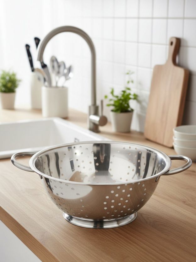 Дуршлаг используется для слива воды с овощей, макарон, риса, ягод. Он оснащен двумя удобными ручками, а благодаря ножке изделие можно поставить прямо в раковину. Такой удобный и практичный аксессуар станет незаменимым помощником на кухне для каждой современной хозяйки.