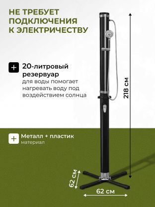 • 20-литровый резервуар для воды помогает нагревать воду под воздействием солнца.