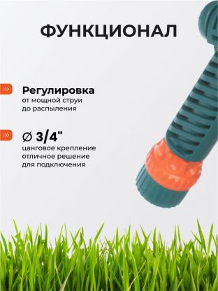 Душ-пистолет 3/4" с цанговым креплением — надежное решение для полива газона, огорода и организации душа на даче. Прочный пластиковый корпус и статическая конструкция разбрызгивателя обеспечивают равномерное распределение воды. Простое подключение диаметром 3/4" делает установку быстрой и удобной.