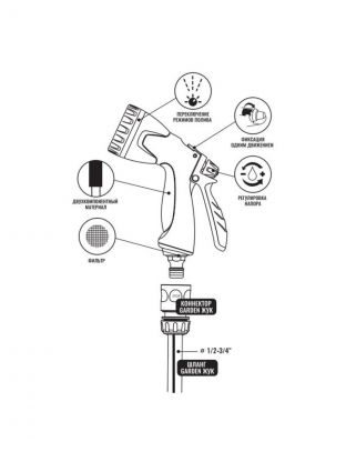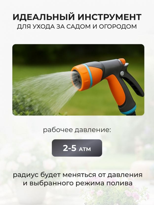 Душ-пистолет поливочный 8 режимов, под коннектор, с фиксатором, Жук Garden – функциональное решение для ухода за садом, газоном и огородом. Универсальность и простота использования делают его незаменимым помощником для эффективного полива на приусадебном участке. Благодаря восьми различным режимам распыления легко подобрать оптимальный вариант для любого типа растений: от нежных цветов до густых кустарников. Эргономичная конструкция обеспечивает комфорт даже при длительном использовании, а наличие фиксатора позволяет зафиксировать поток воды, что делает процесс полива более удобным и экономичным.