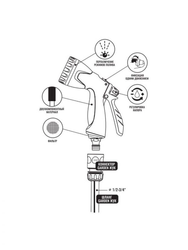 Душ-пистолет Жук Garden помогает экономить воду и время, обеспечивая равномерный полив без лишних усилий. Компактные размеры и легкий вес делают его удобным для хранения и транспортировки. Прочный пластик устойчив к воздействию влаги и перепадам температур, что особенно важно для использования в российских климатических условиях. Простая установка под стандартный коннектор избавляет от сложных манипуляций – достаточно подключить к шлангу и выбрать нужный режим.