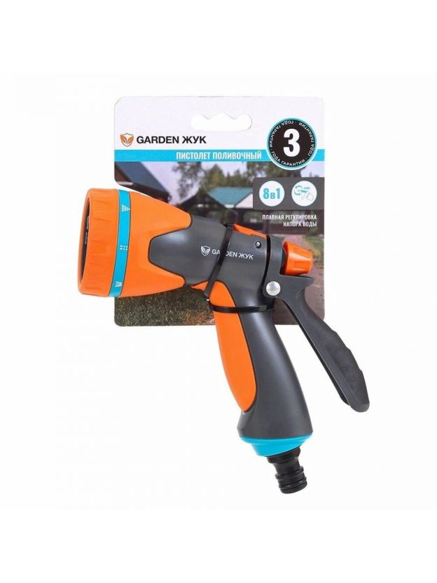Душ-пистолет поливочный 8 режимов, под коннектор, с фиксатором, Жук, Garden, 322684-00