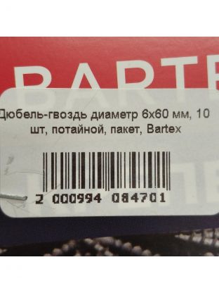 Дюбель-гвоздь диаметр 6х60 мм, 10 шт, потайной, пакет, Bartex