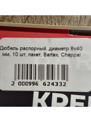 Дюбель распорный, диаметр 8х40 мм, 10 шт, пакет, Bartex, Chappai