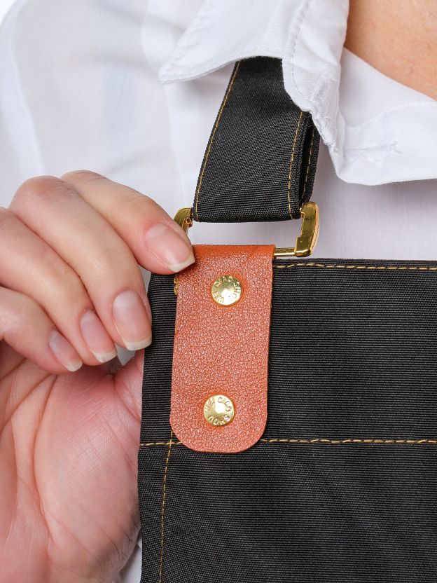 - Универсальный дизайн и практичный карман — удобно хранить кухонные инструменты под рукой