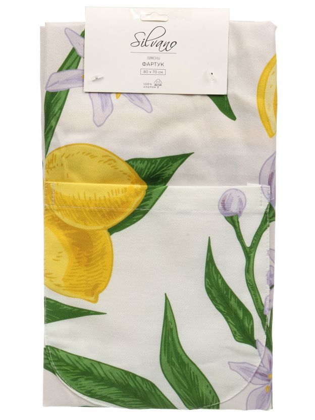 Фартук 80х70 см из 100% хлопка с ярким лимонным принтом — идеальное решение для кухни, дачи или подарка. Натуральный материал, универсальный размер, стильный дизайн.