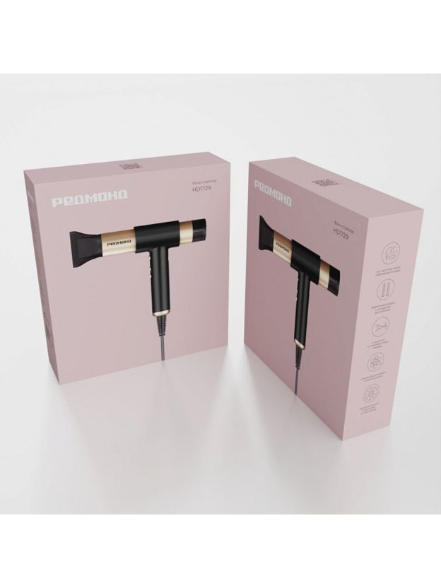 Фен Redmond HD1729: мощная сушка и бережный уход за волосами с ионизацией, 3 режимами и стильным дизайном для дома и путешествий.