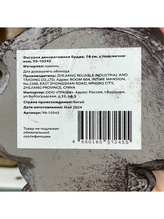 Фигурка декоративная Будда, 18 см, с подсвечником, Y6-10545/A020147