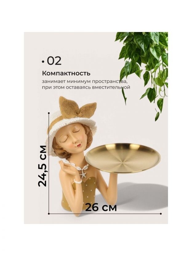 Выбирая декоративную фигурку "Девушка с подставкой", вы получаете не просто элемент декора, а возможность выразить свою индивидуальность и создать уютную атмосферу в вашем доме. Это инвестиция в красоту и стиль, которая будет радовать вас и ваших гостей каждый день.