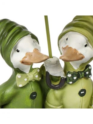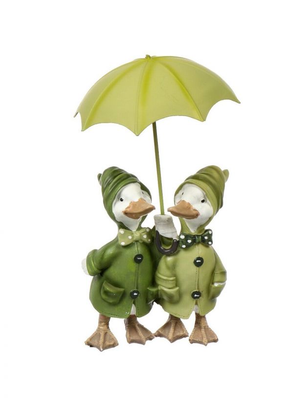 Очаровательная декоративная фигурка станет оригинальным подарком для всех любителей милых вещиц. Изделие выполнено в виде уток под зонтиком.
