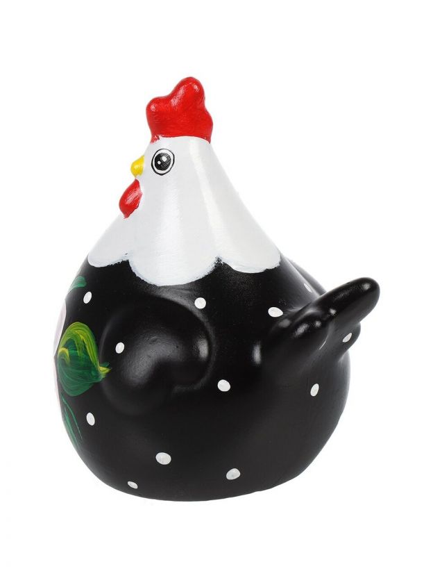Фигурка декоративная гипс, Курица большая гладкая, 10.8х13.3х14.5 см, с белой головой, черная, 28 2220 0971