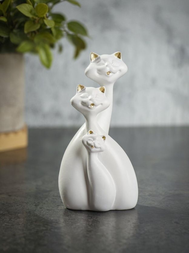 Создайте уют и гармонию в доме с декоративной фигуркой из полистоуна — «Семья котов». Эта изысканная белая скульптура высотой 13 см станет стильным акцентом в интерьере и подарит тепло домашнего очага. Идеальный выбор для любителей кошек и ценителей элегантного декора.