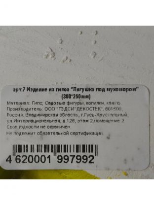 Фигурка садовая Лягушка под мухомором, 25х30 см, гипс, арт.7