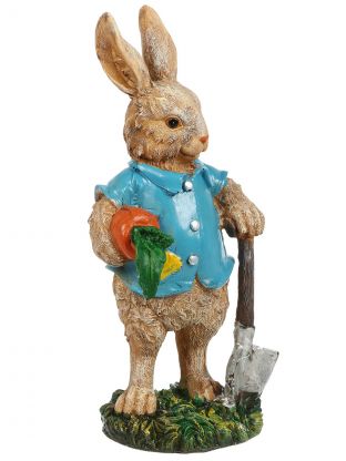 Фигурка садовая декоративная «Братец кролик» из полистоуна 12x13x29 см — стильное украшение для дачи или сада, прочная и долговечная, отличный подарок.
