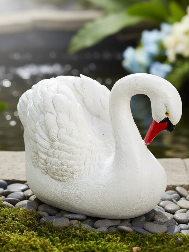 Многие спрашивают: «Чем отличается фигурка из полистоуна от изделий из гипса?» — полистоун прочнее, не боится осадков и дольше сохраняет яркость красок. Фигурка подходит для оформления клумб, водоёмов, дорожек, а также как необычный акцент в интерьере. Если не знаете, как использовать декоративного лебедя — разместите его у входа или на видном месте, чтобы подчеркнуть уют и стиль участка.