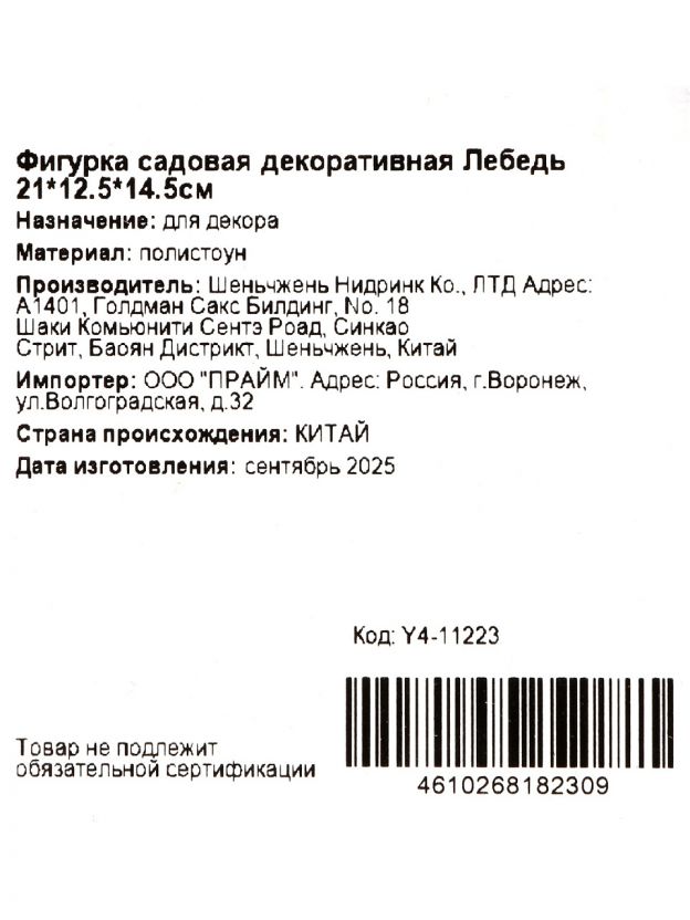 Оформите заказ на садовую фигурку Лебедь сейчас — получите быструю доставку и гарантию качества. Выгодная цена, долговечность и эстетика делают этот декор оптимальным выбором для вашего пространства.