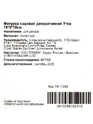 Декоративная фигурка утки из полистоуна 16х9х10 см — стильный акцент для сада или дачи, который прослужит годами и порадует гостей.
