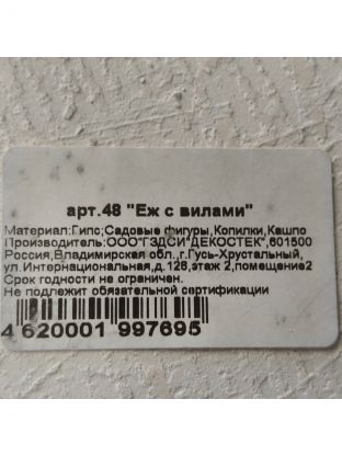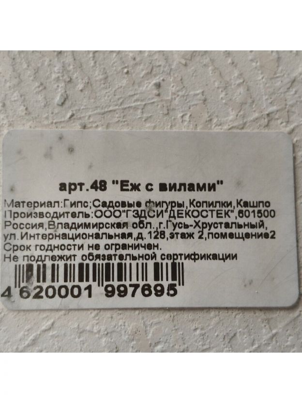 Фигурка садовая Еж с вилами, 21х30 см, гипс, 48