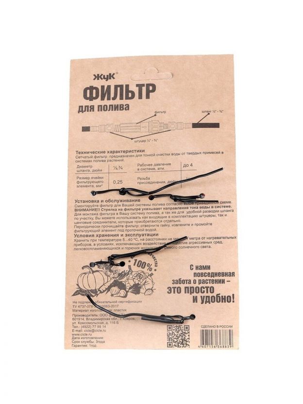 Фильтр для полива Жук, 8839-00 – надежное решение для качественного ухода за садом и огородом. Изготовленный из прочного пластика, он обеспечивает долговечность и эффективность. Быстросъемная конструкция и елочная резьба делают установку и замену простыми и быстрыми. Этот фильтр идеально подходит для использования в системах полива, обеспечивая чистую воду без лишних частиц.