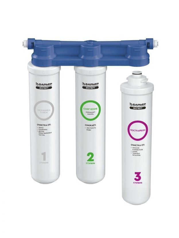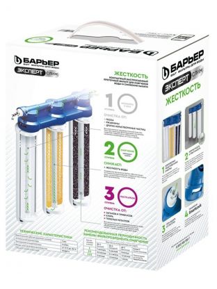 Изменённая версия популярной модели Барьер EXPERT обеспечивает комплексную очистку от солей жесткости и всех основных содержащихся в ней вредных примесей. Предотвращает образование накипи за счет удаления из состава воды солей жесткости. Картриджи всё так же можно менять одной рукой, теперь положение фильтрующих элементов статично.