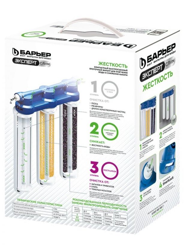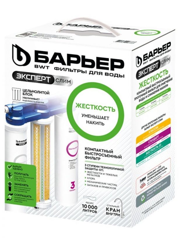 Фильтр для воды Барьер, Эксперт Slim Жесткость, для холодной воды, система под мойку, очистка и снижение жесткости, 3 ступ