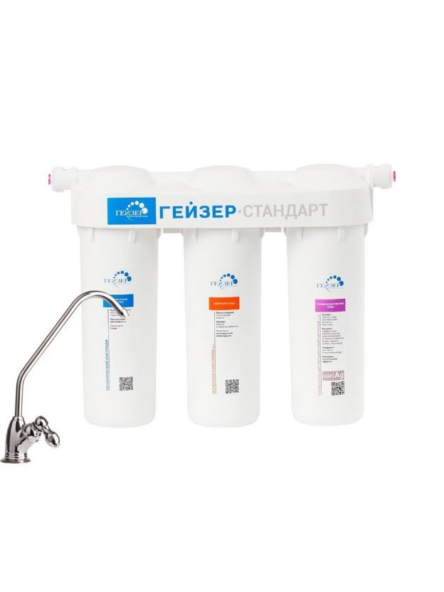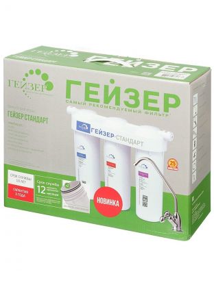 Фильтр Гейзер Стандарт специально разработан для регионов с жесткой водой (средний уровень минерализации). Замена картриджей для семьи из 3–4 человек в среднем 1 раз в год.