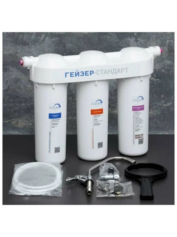 Фильтр Гейзер Стандарт для жесткой воды состоит из 3 картриджей: