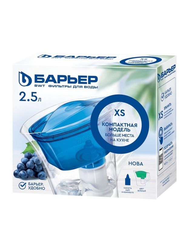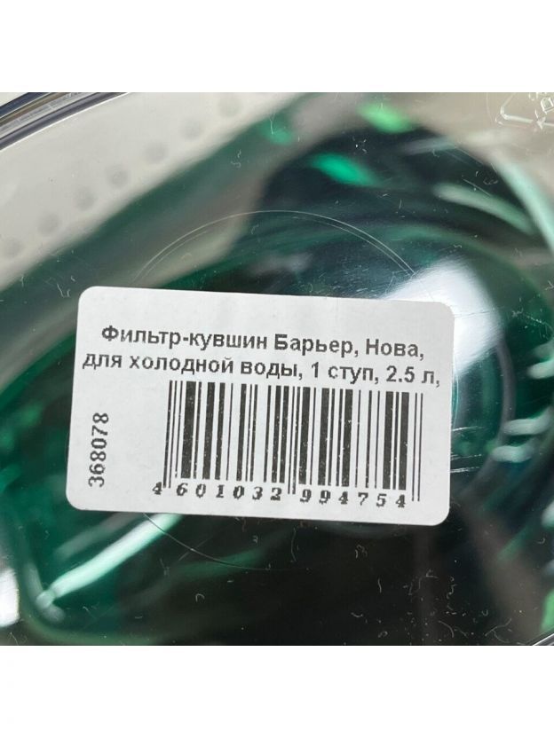 Фильтр-кувшин Барьер, Нова, для холодной воды, 1 ступ, 2.5 л, зеленый, В442Р00