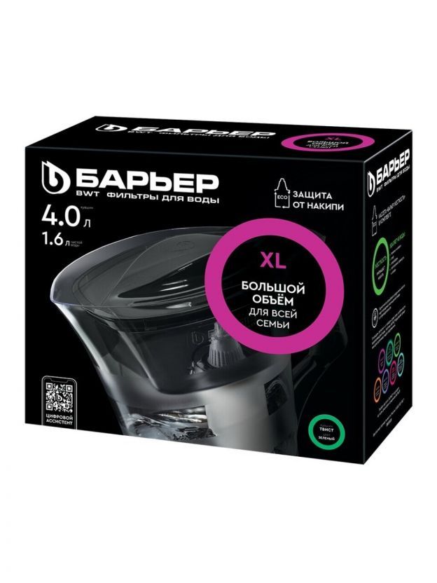 Фильтр-кувшин Барьер, Твист, для холодной воды, 1 ступ, 4 л, зеленый, В172Р00