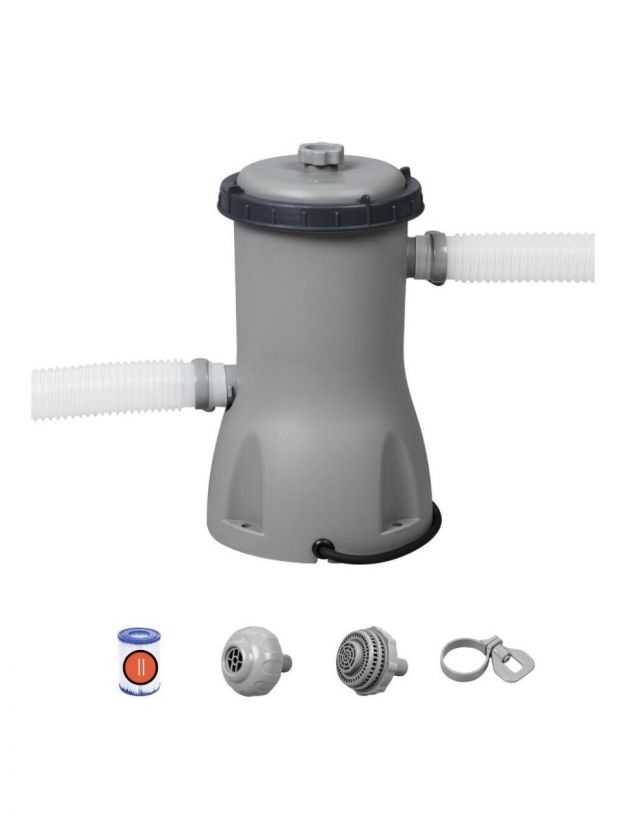 Фильтр-насос Bestway 58386BW оснащен картриджным фильтром типа II, который обеспечивает высокую производительность — 3028 литров в час. Это позволяет быстро и эффективно очищать воду, поддерживая её в идеальном состоянии. Подключение шлангов диаметром 32 мм делает установку и использование устройства простым и удобным. В комплекте предусмотрены все необходимые аксессуары: два шланга длиной 1.5 метра, четыре хомута, а также сетчатые фильтры на входе и выходе для максимальной эффективности фильтрации. Мощность: 40 Вт.