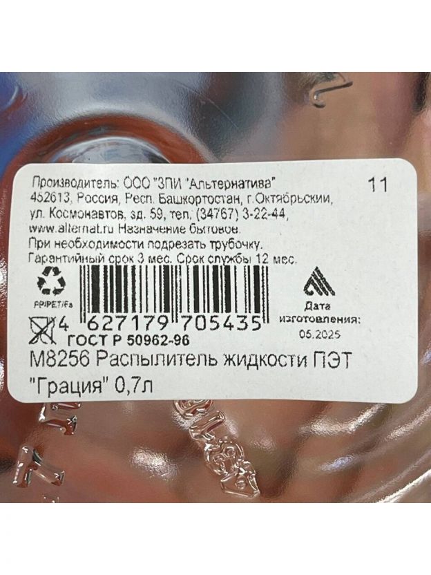 Флакон с распылителем Альтернатива, 0.7 л, пластик, Грация, М8256