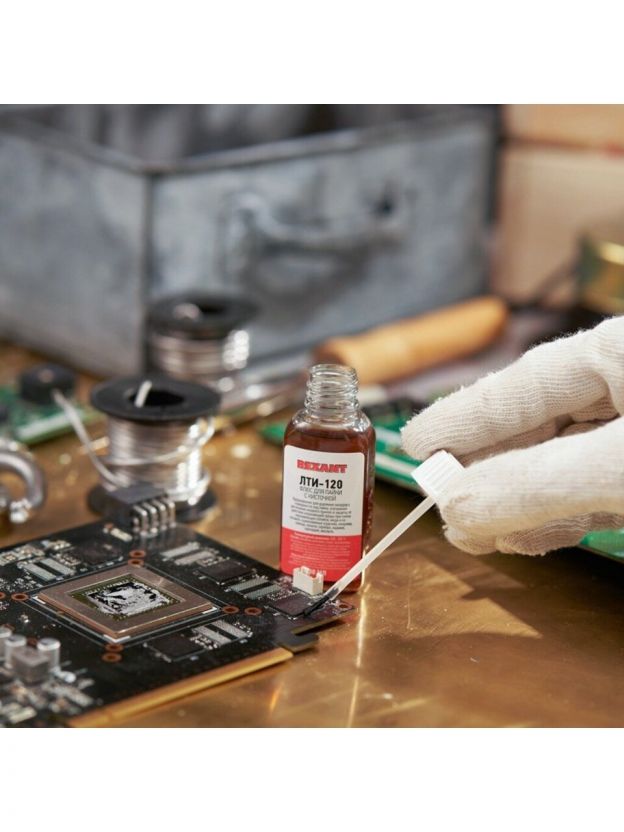 Флюс для пайки Rexant, ЛТИ-120, 30 мл, флакон, с кисточкой, 09-3626