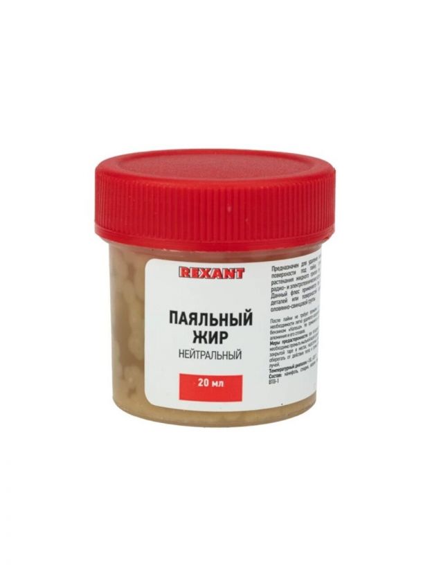 Флюс для пайки REXANT, Паяльный жир, 20 мл — надежное решение для качественной пайки токопроводящих деталей телефонной, радио- и электронной аппаратуры. Оптимальный состав: канифоль, стеарин и пластификатор обеспечивает отличную смачиваемость и легкость работы. После пайки смывка не требуется, что экономит время и силы. Температура наибольшей активности: +180…+300°С.