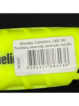 Фонарь Camelion, LED 3W Toshiba, пластик, желтый, 4xLR6, дайв, алюминий, блистер, LED51534