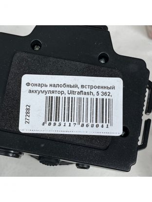 Фонарь налобный, встроенный аккумулятор, Ultraflash, 5 362, зарядка от сети 220 В, пластик, черный, 11256