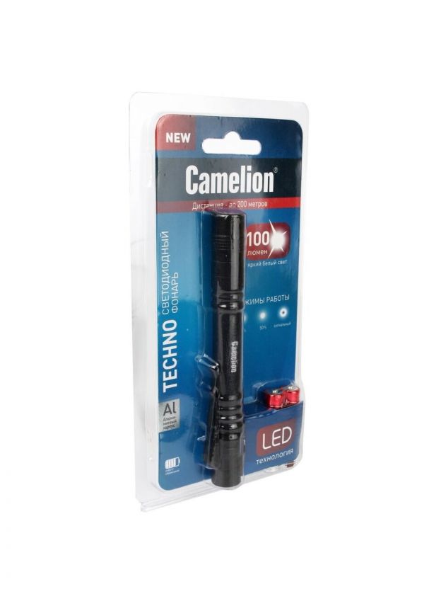 Фонарь ручной, Camelion, LED51517, алюминий, черный, LED XPE, 3 реж 2XLR03 в комплекте