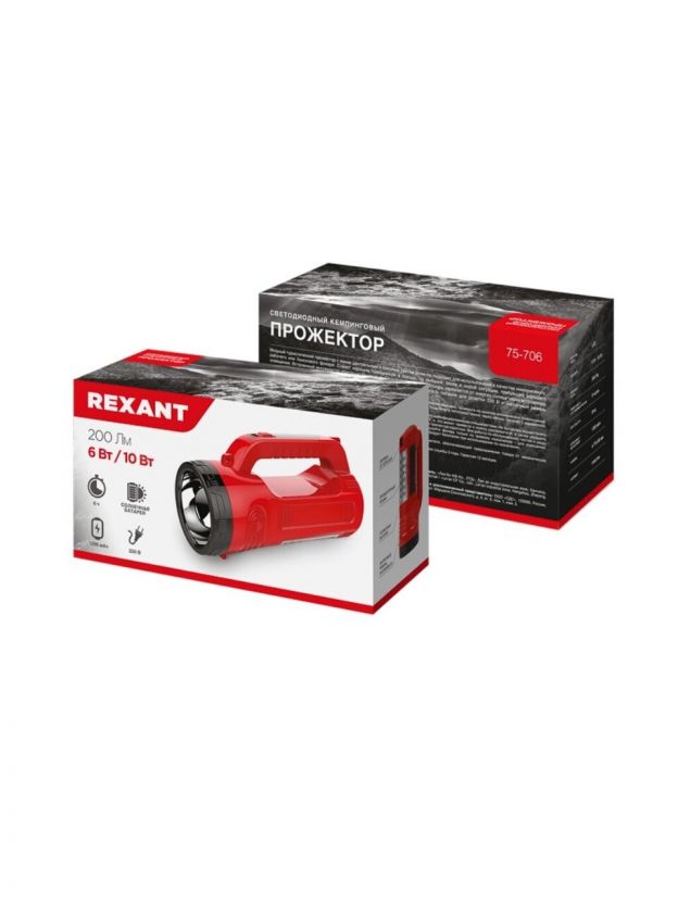 Мощный поисковый туристический прожектор с ярким центральным и боковым светом Rexant отлично подходит для использования в качестве рабочего, поискового или кемпингового фонаря.