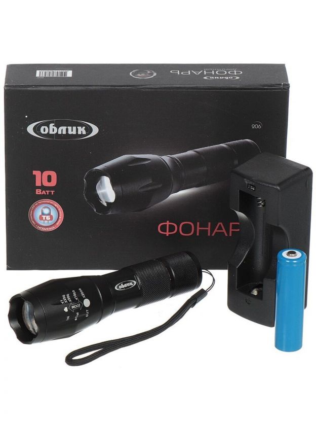 Фонарь ручной, встроенный аккумулятор, Облик, 206, зарядка от сети 220 В, пластик, 10 Ватт, Zoom, УТ-00000398
