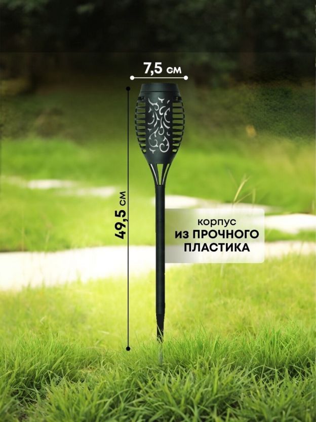 Фонарь садовый Uniel, Small Torch-1 USL-S-184/PM495, на солнечной батарее, грунтовый, пластик, 7.5х49.5 см