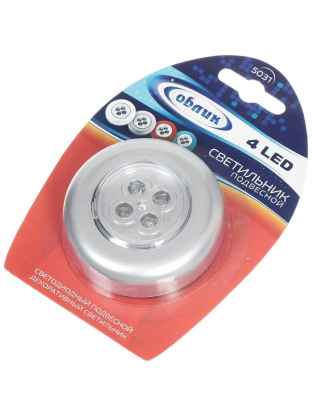 Фонарь Облик - отличный вариант для кемпинга, компактный светильник не займет много места и облегчит поиск предметов в темноте. Аксессуар легко крепится на двухсторонний скотч и подойдет для создания освещения в саду, шкафах, декоративных конструкциях.