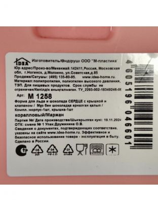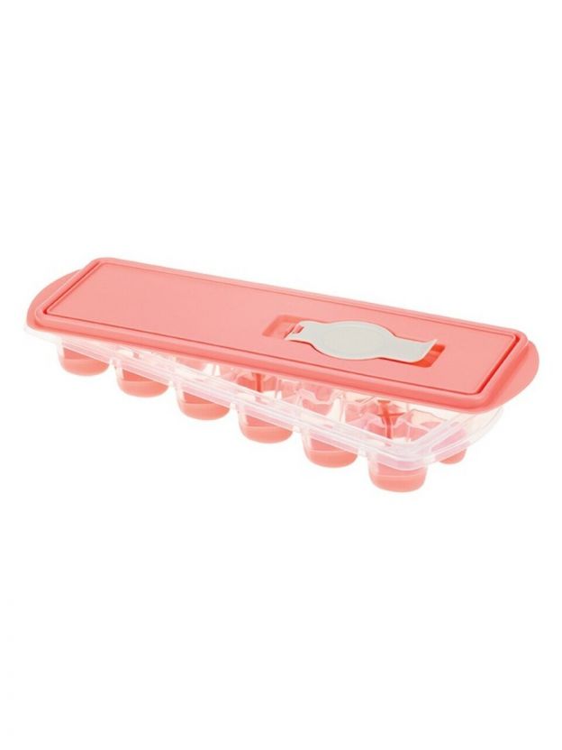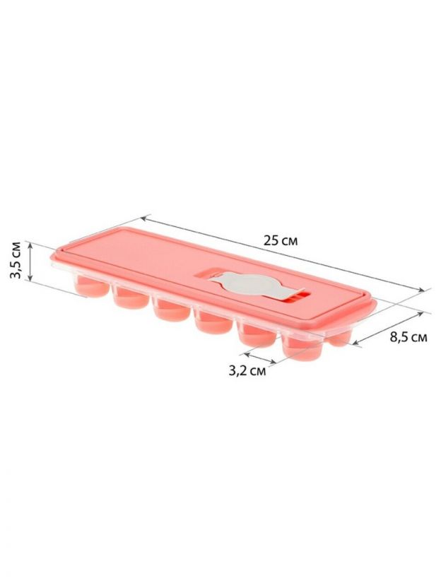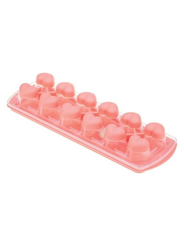 Форма для льда Сердце, пластик, с крышкой и клапаном, коралл, Idea, М 1258