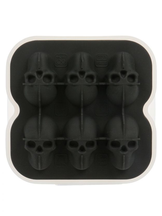Форма для льда Sirocco Strong: 6 черных черепов из силикона — стиль и практичность для коктейлей, вечеринок и подарка. Удобная крышка, прочный материал, оригинальный дизайн.