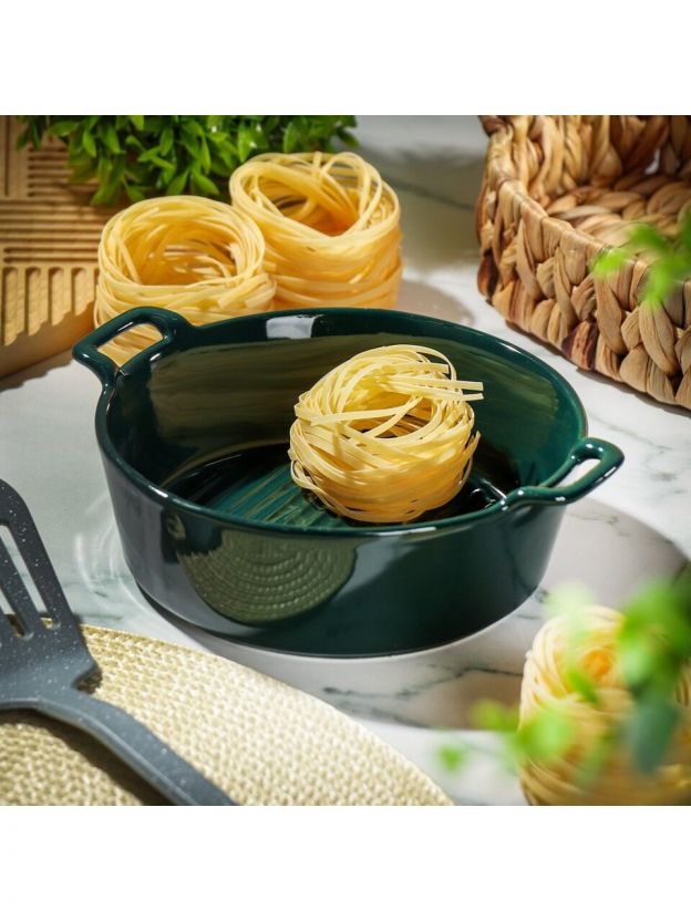 Форма для выпечки Daniks Эмеральд — это универсальный выбор для тех, кто ищет надежную и стильную посуду для духовки и микроволновки. Керамика отлично держит тепло, что особенно важно для равномерного приготовления пирогов, запеканок, курицы или рыбы. Рифленое дно предотвращает пригорание и облегчает выемку готового блюда, а насыщенный зеленый цвет выгодно выделяет сервировку.