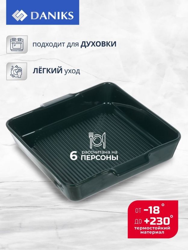 Форма для выпечки Daniks Эмеральд — современное решение для тех, кто ищет универсальную жаропрочную посуду для духовки и микроволновки. Квадратная конструкция и рифленое дно обеспечивают равномерное пропекание теста и сочность блюда, а керамика поддерживает стабильную температуру. Часто спрашивают, какой материал выбрать для запекания курицы или пирога — керамика сохраняет вкус и структуру продуктов, не выделяет посторонних запахов и устойчива к высоким температурам.