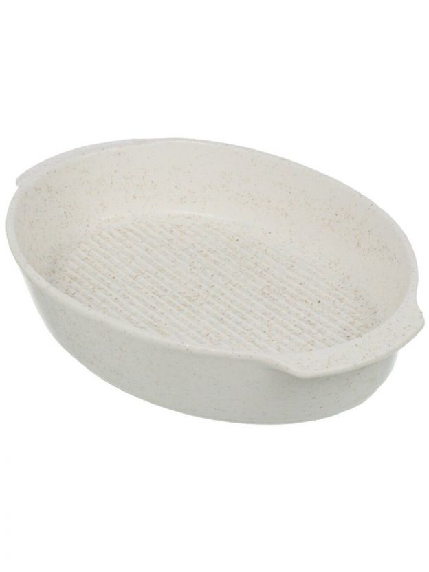 Форма овальная, диаметр 33 см, объем 2 литра — этого достаточно для запекания курицы, рыбы или пирога на 4–6 персон. Высокие борта предотвращают вытекание сока.