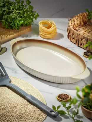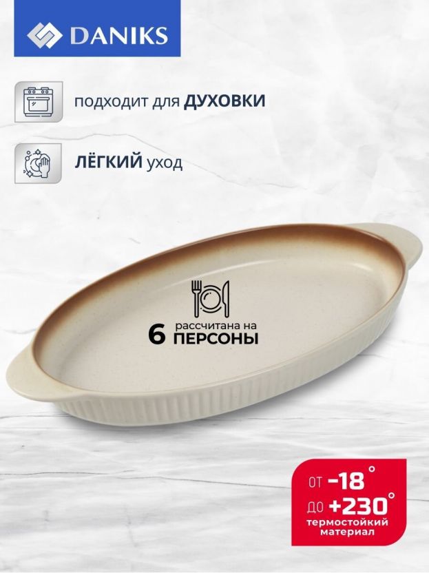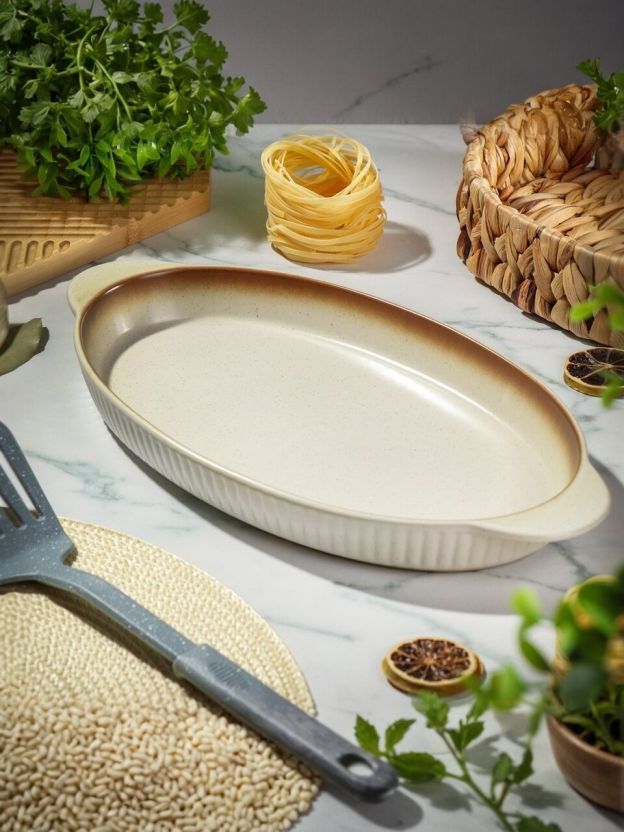 Форма для выпечки керамика, 36х18.5х3.5 см, 1 л, овальная, бежевая, Daniks, Полдень, Y4-8729