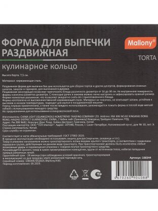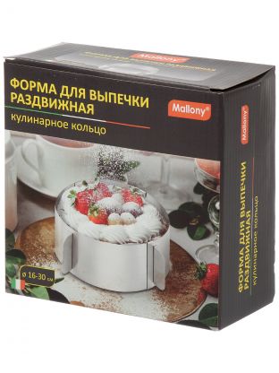 Форма для выпечки Mallony Torta 16-30 см — универсальное раздвижное кольцо из нержавеющей стали: идеальный выбор для домашних и профессиональных кондитеров, которые ценят точность, долговечность и удобство.