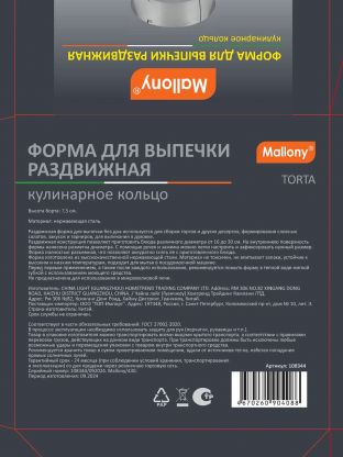 Форма для выпечки Mallony Torta — это раздвижное кольцо из нержавеющей стали, которое идеально подходит для приготовления бисквитов, муссовых и слоёных тортов. Благодаря регулируемому диаметру (16–30 см) вы сможете выбрать оптимальный размер для любого рецепта — от мини-десертов до праздничных тортов. Многие спрашивают: «Как выбрать форму для торта, чтобы она служила долго?» — ответ прост: нержавеющая сталь обеспечивает жаропрочность и простоту ухода, а отсутствие антипригарного покрытия делает изделие безопасным для здоровья.
